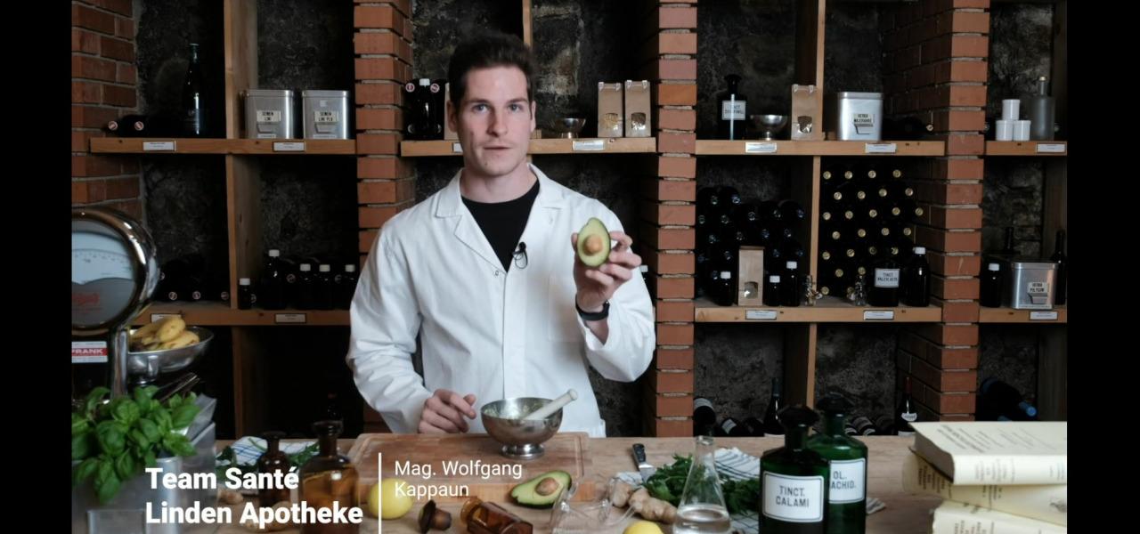 Fruchtfleisch einer Avocado zu Paste verarbeiten, auf die Haut auftragen und 15 Minuten einwirken lassen. Dann mit Wasser abwaschen.